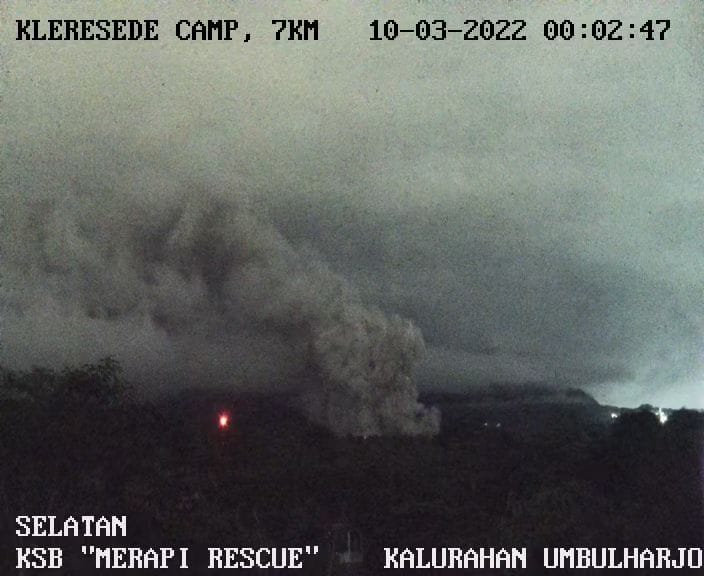 GNews,MAGELANG - Gunung Merapi kembali mengalami erupsi pada Rabu, 09/03/2022 malam dengan meluncurkan guguran awan panas dengan jarak luncur sejauh 5 kilometer ke arah tenggara.