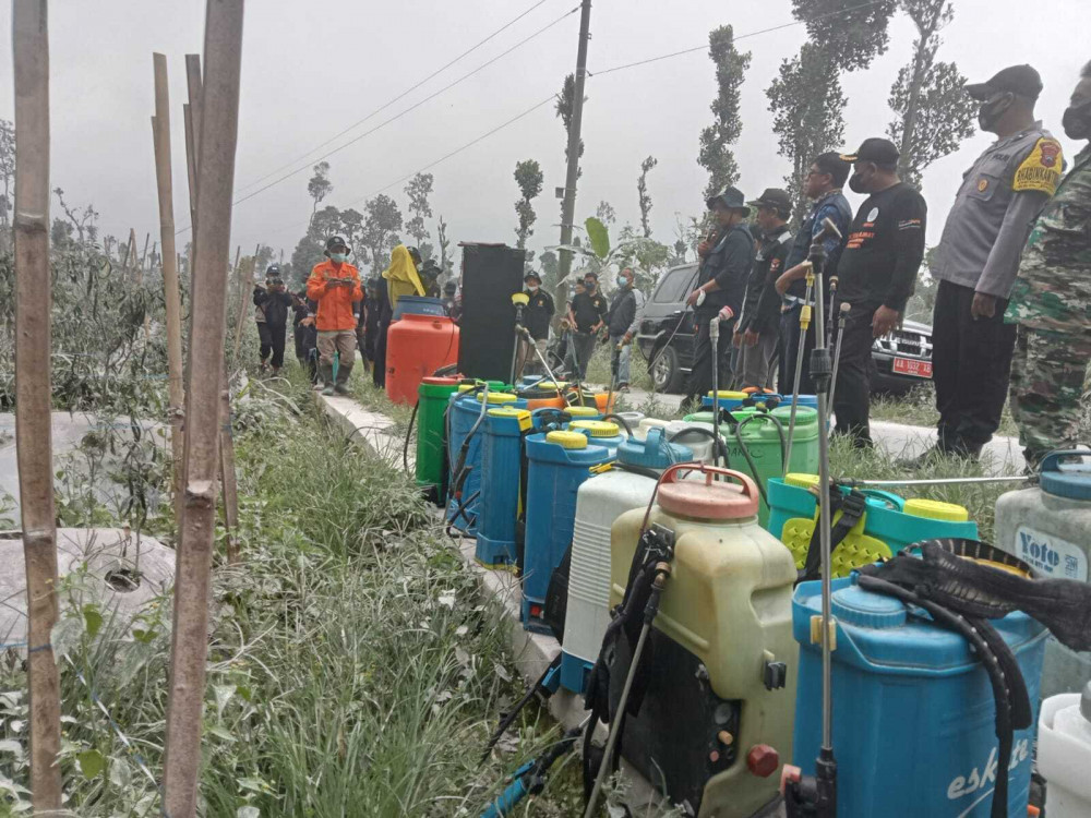 '' Ini merupakan gerakan bersama antara Distan pangan dan penyuluh pertanian kabupaten Magelang bersama relawan,BPBD,Forkompimcam Dukun,Perangkat Desa Paten dan kelompok Tani Desa Paten sebagai upaya untuk menanganai paska erupsi pada tanggal 13 Maret 2023'' Kata Kepala Dinas Pertanian dan Pangan Kabupaten Magelang Romza Ernawan Di sela Penyemprotan.